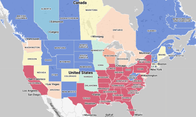 DAT Dry Van Outbound Market Conditions Map, past 30 Days