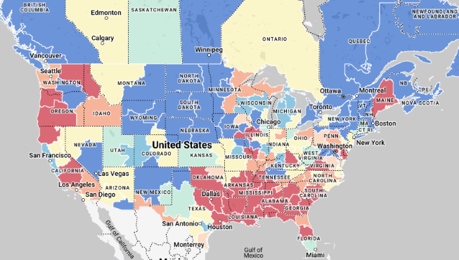 - National linehaul rates saw minor improvement within the spot market in May, while the contract side continued its negative trend, narrowing the contract-to-spot spread to $0.53.